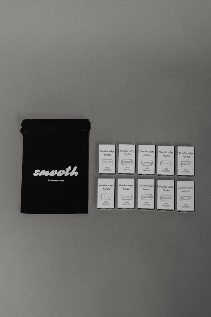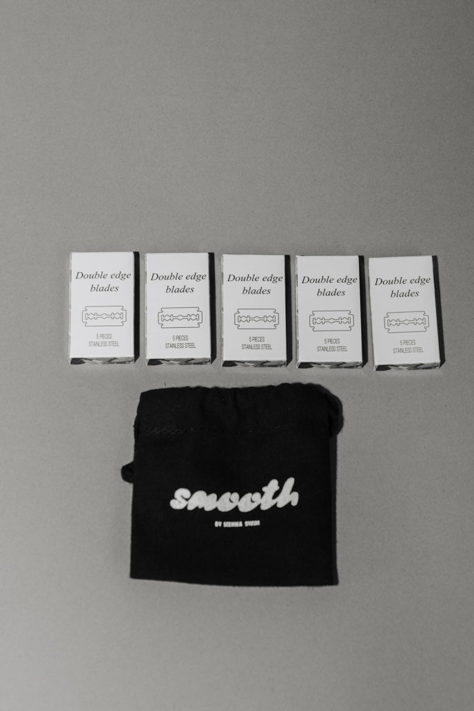 A safety razor is the secret to the closest, smoothest shave possible, using just one double-edged blade instead of multiple blades like most disposable razors do. Crafted with the highest-quality metal, the weighted handle on our SMOOTH razor effortlessly glides over your skin. Not only does it outperform cartridge razors, but it also aids in reducing razor bumps and ingrown hairs.
